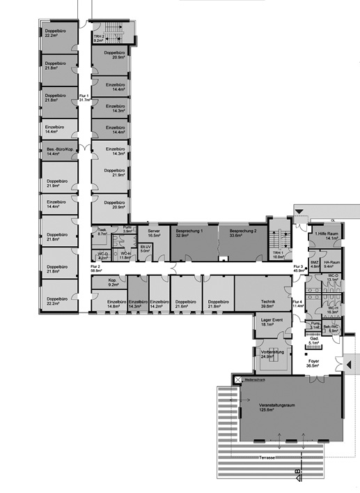 Veranstaltungsgebäude mit Grundriss Erdgeschoss