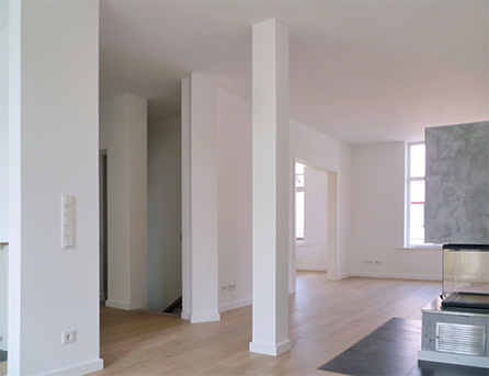 Das Jugendstilgebäude bildet als Eckpfeiler in der zentral gelegenen Rautenstraße einen markanten Blickfang im Charme der Gründerzeit, in dem nach Umbau und Komplettsanierung exklusive Stadtwohnungen für den Verkauf als Eigentumswohnungen entstanden sind. Hohe Decken und kontemporäre Grundrisse in Verbindung mit hochwertigen Materialien und komfortablen Ausstattungen ließen außergewöhnliche Erlebnisräume in den 8 Wohnungen und 3 Maisonetten entstehen. Die Wohnungen mit 3 bis 6 Zimmern weisen Wohnflächen von 115 m² bis 187 m² auf. Die Erdgeschoss-Wohnungen verfügen über einen Garten; die oberen Wohnungen über große Balkone. In das Haus wurde aufwendig ein Aufzug eingebaut.