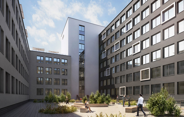 Das vorhandene Gebäude besteht aus einem Untergeschoss und sieben Obergeschossen. Die Geschosse 1. OG bis 7. OG werden mit Büronutzung belegt. Das Erdgeschoss wird den Eingangsbereich, eine Küche mit Restaurant und Retailflächen zur gewerblichen Nutzung beinhalten. Der Eingangsbereich und die Lobby werden grundlegend neu gestaltet. Im Untergeschoss befinden sich überwiegend Lager- und Technikräume sowie die Tiefgaragenparkplätze.