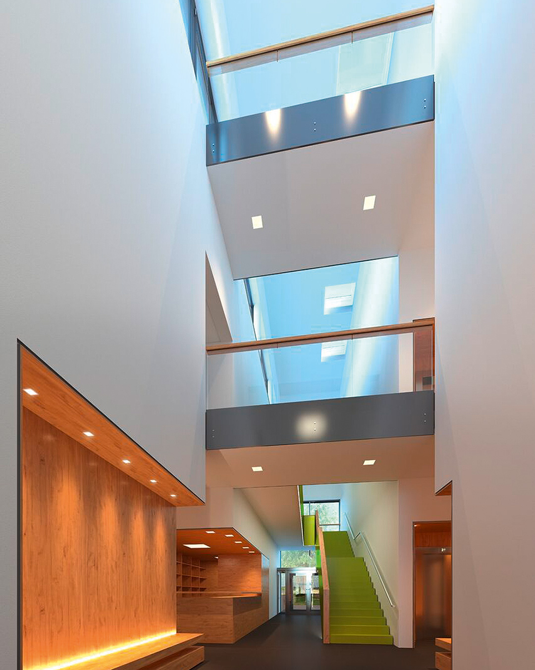 Innengestaltung mit zentraler Treppe.