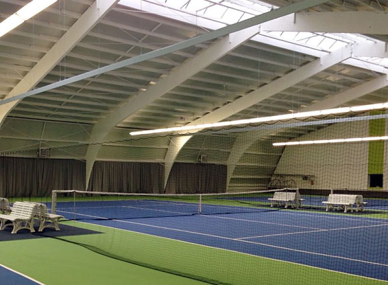 Sanierung einer Tennishalle mit Sanierung und Aufstockung Servicegebäude "Wedelhalle"