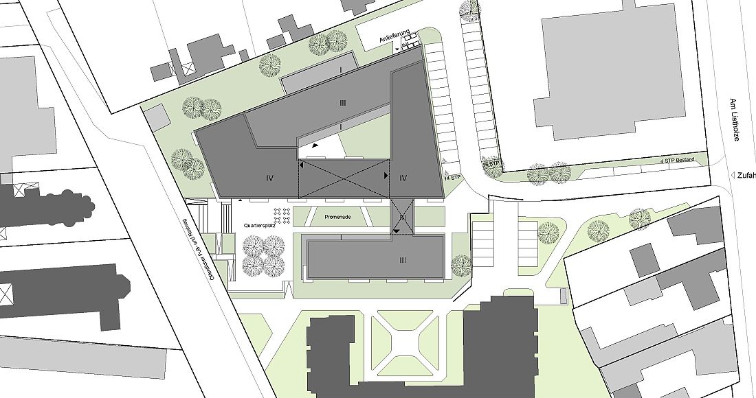 • Ausbildung einer Promenade von Westen nach Osten führt zur „Durchlässigkeit" des Grundstückes zwischen der Straße „Am Listholze" und der Fuß-und Radwegverbindung
