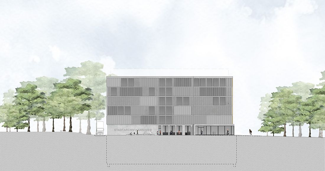homogenen Kubatur an. Lamellen visualisieren das Thema des (Auf-) Bewahrens und erinnern an die
